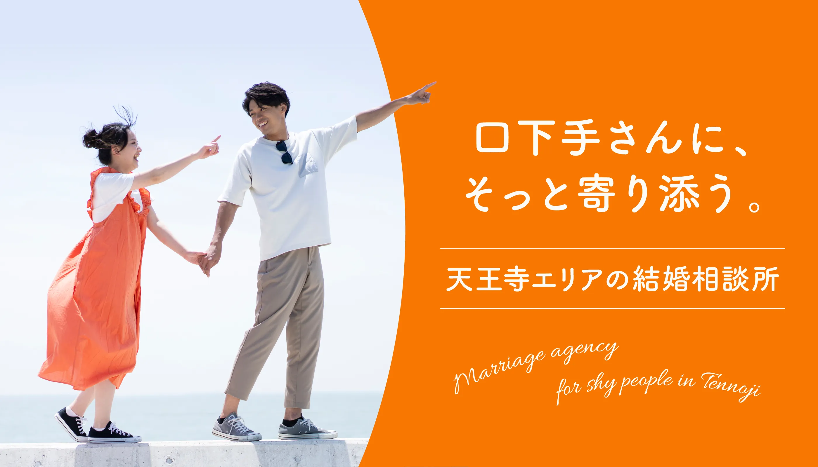 マリッジサロン senseは、人見知りの方を優しくサポートする天王寺の結婚相談所です。「天王寺」駅から徒歩7分の好立地で、業界最大級のIBJ会員ネットワークを活用した豊富な出会いをご提供。人見知りの方でも安心の「お見合い練習」や「進捗管理」を実施し、成婚という目標に向けてカウンセラーが二人三脚で歩みます。